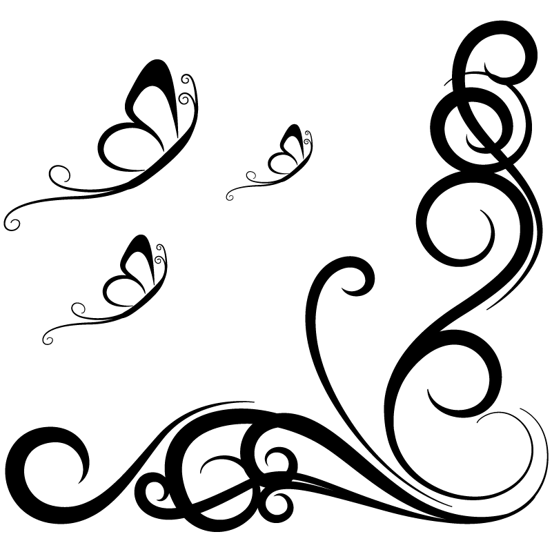 The Black Swirl Corner Ornament With Butterflies PNG image with no background is ideal for direct use in the design project or presentations. A nature-inspired decorative element.