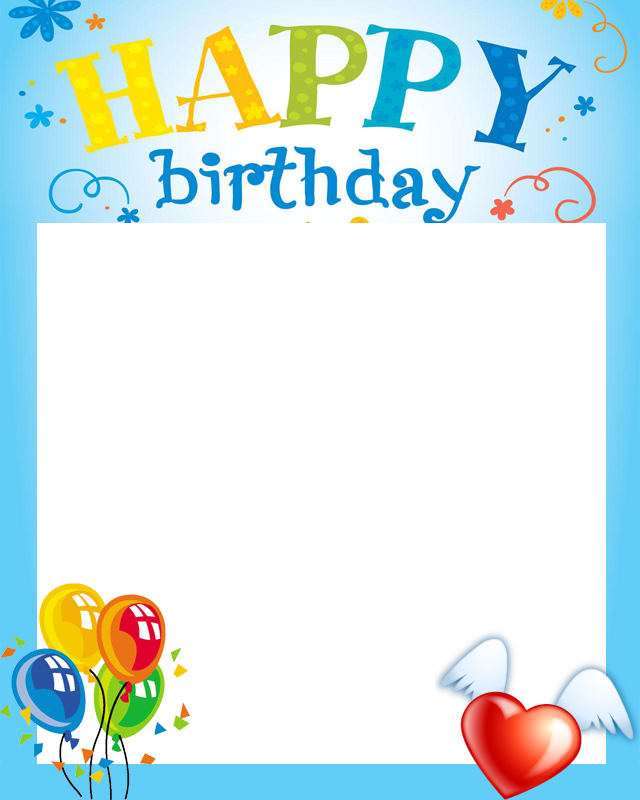 Blue Birthday Photo Frame with Balloons Free Download